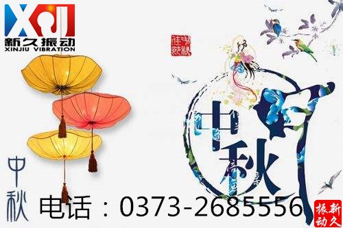 中秋節即將來臨,新鄉市新久振動機械有限公司全體員工祝您和家人的事業和生活像那中秋的圓月一樣,亮亮堂堂,圓圓滿滿!福星高照,喜氣長留!祥云浮紫閣,喜氣溢朱門!簾短能留月,樓高不礙云!蘭經香風滿,松窗夜月圓!